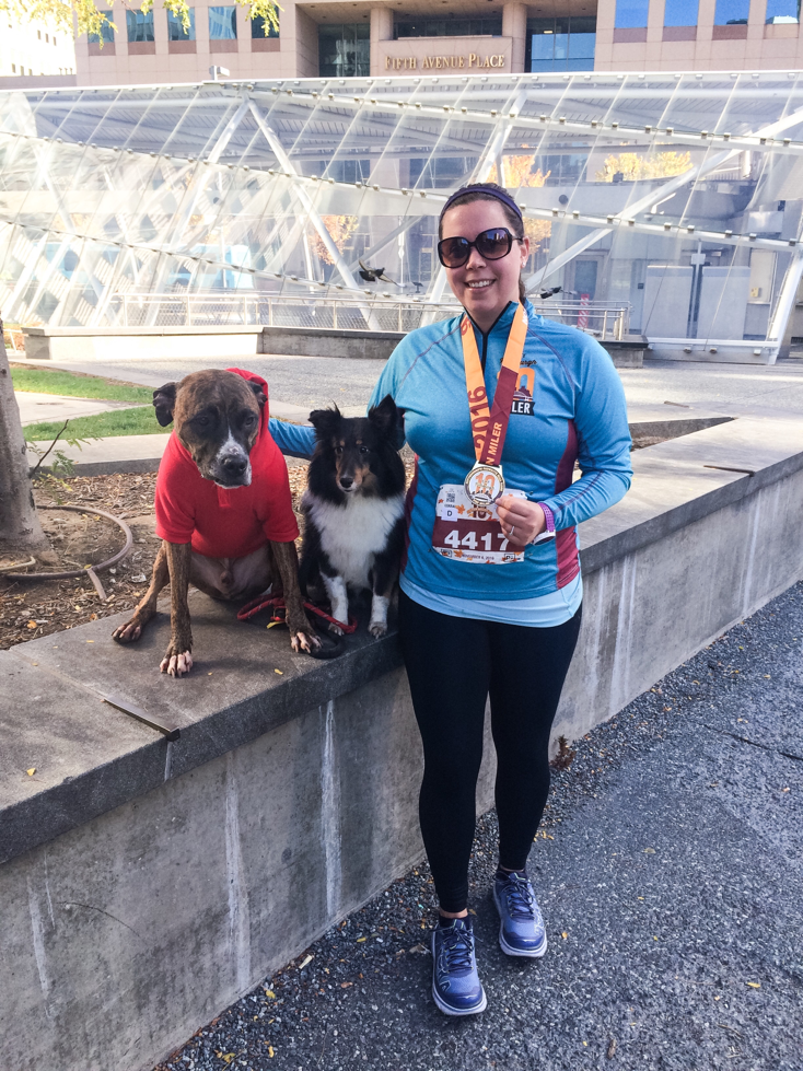 The finish is always full of spectators on Liberty Avenue and I was pumped to see Brad with our dogs at the finish line. I don't focus too much on race times but I ran a 2:03 for this race.